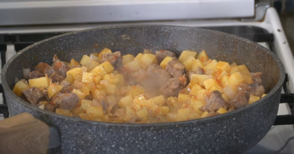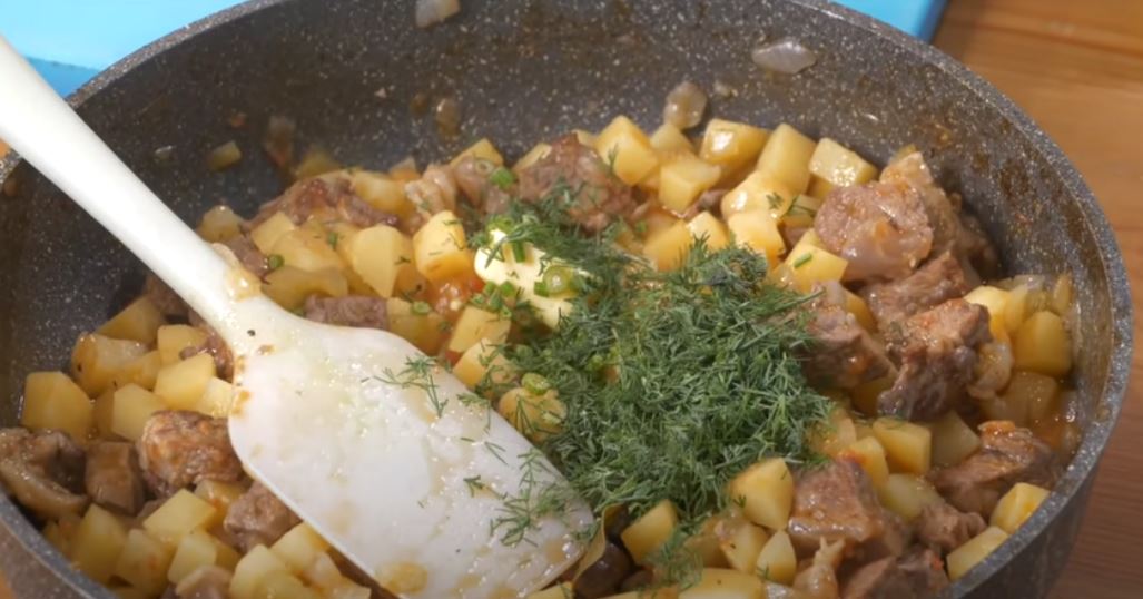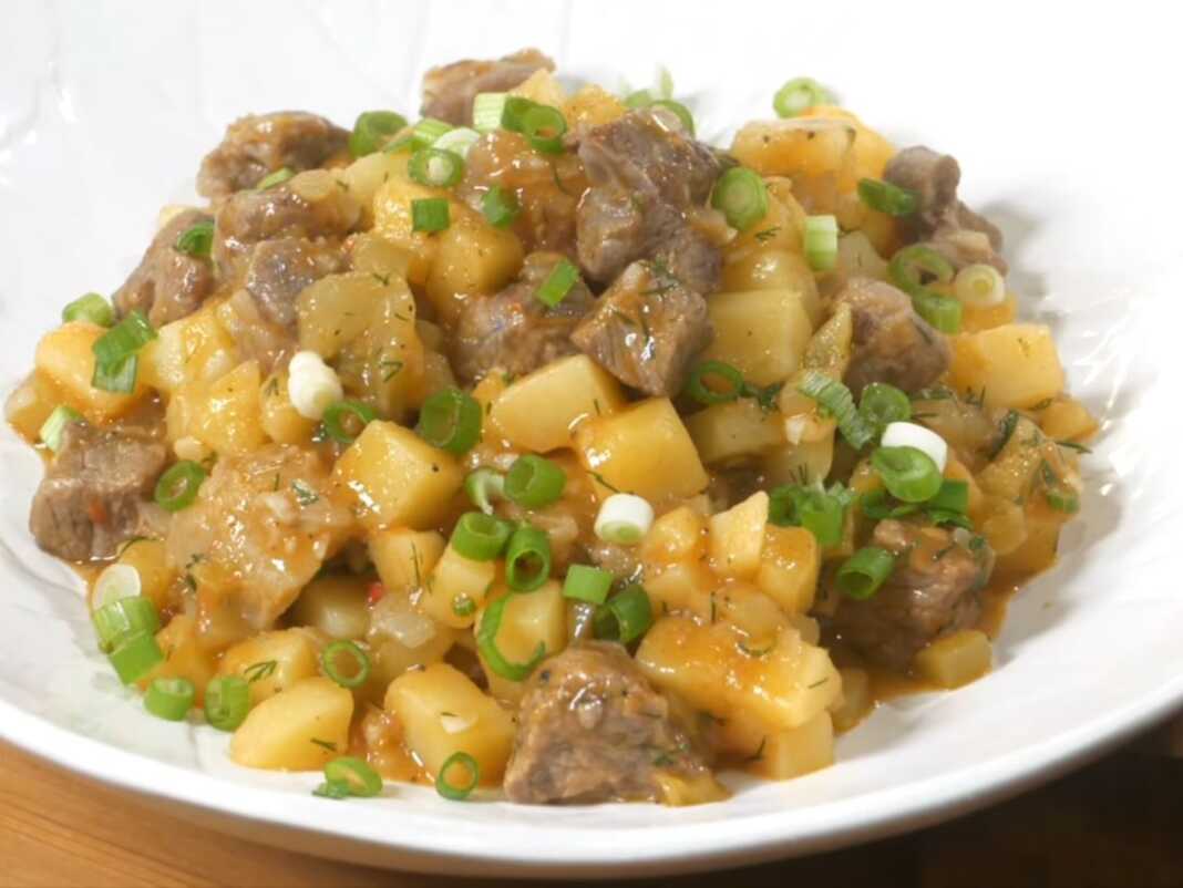 Κρέας με Πατάτες στο τηγάνι με φρέσκο κρεμμυδάκι