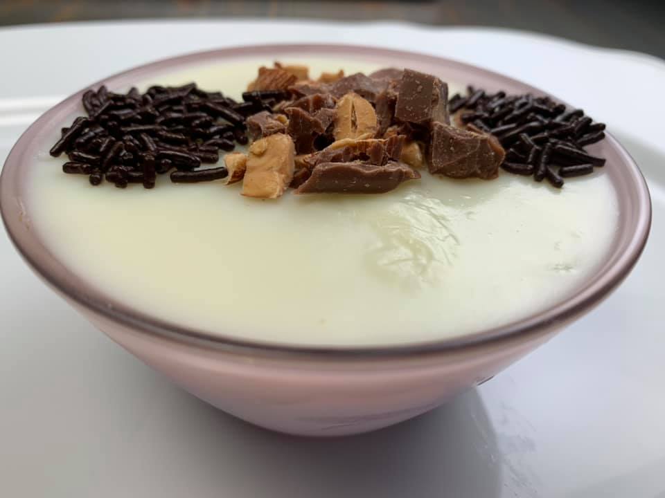 Αυτό μπορούμε να το μοιράσουμε στα μπολάκια με την κρέμα βανίλια από πάνω