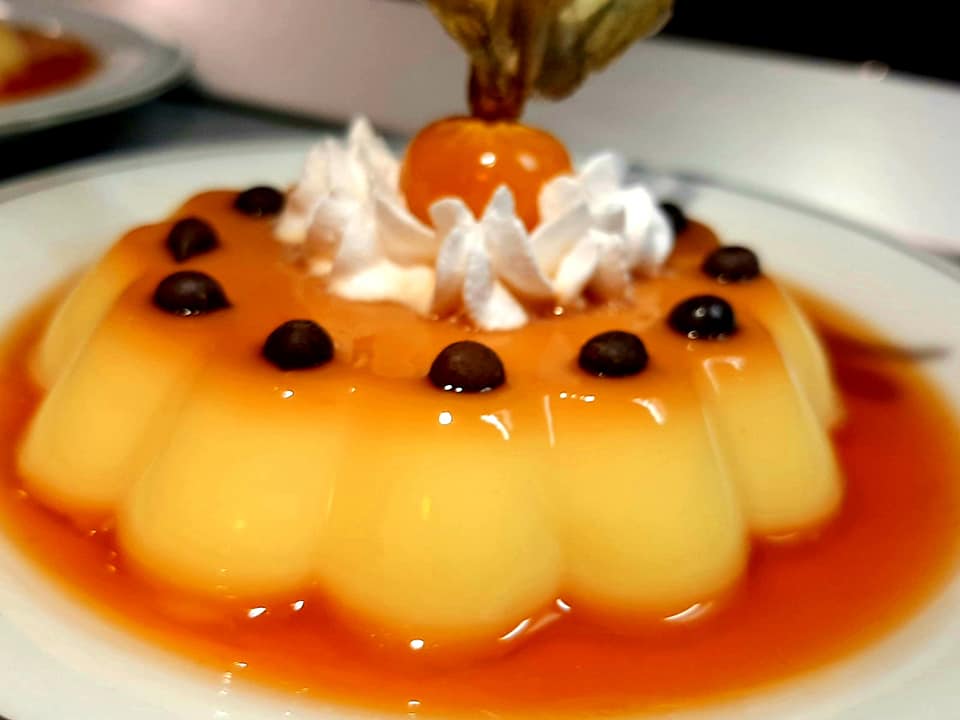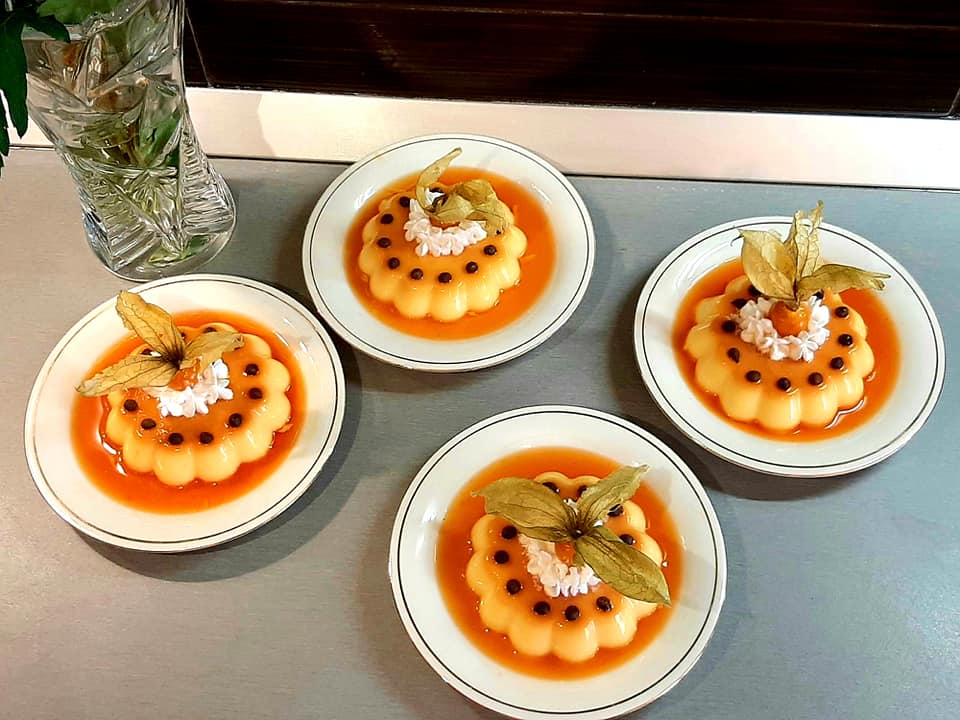 Βάζω μια κουταλιά της σούπας σε κάθε μπολ καραμελα. Ρίχνω το μείγμα αυγών. Έβαλα την τελική κρέμα σε ένα ταψί με παγωμένο νερό και την έβαλα στο φούρνο. Ψήνουμε για 1 ώρα και 30 λεπτά στους 140 βαθμούς και προσθέτουμε παγάκια κάθε μισή ώρα. Το άφησα να κρυώσει στο ταψί! Διακοσμήστε με σαντιγί και σταγόνες σοκολάτας…