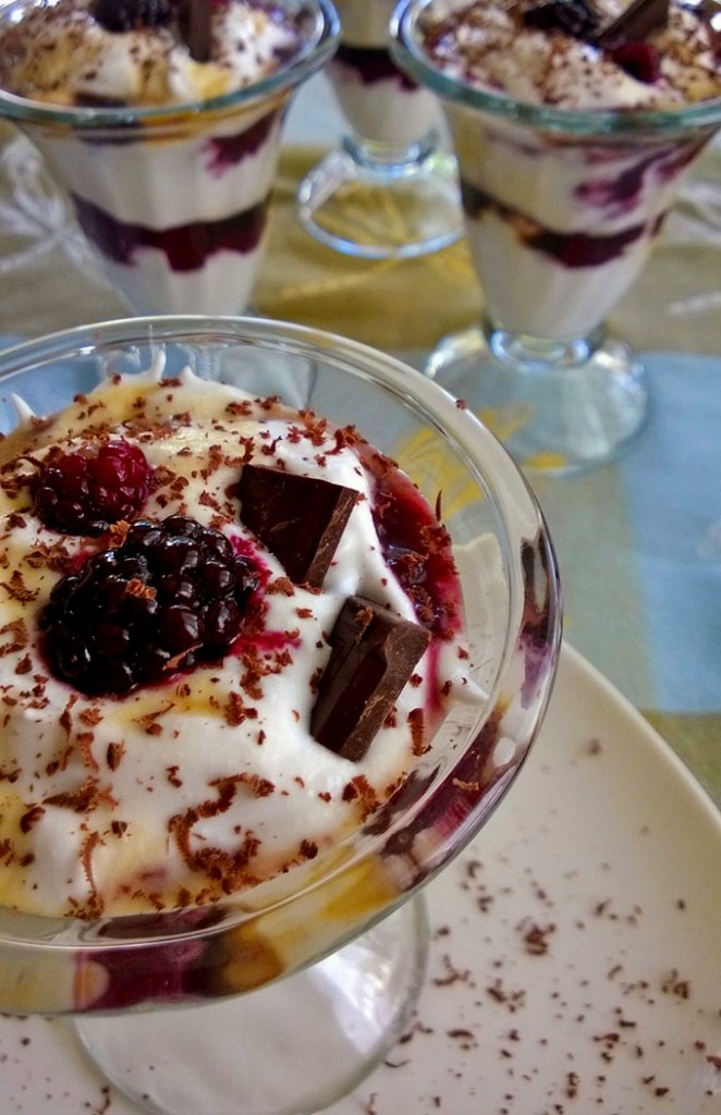 Τελειώστε με σοκολάτα τριμμένη και φρέσκα μούρα για διακόσμηση.