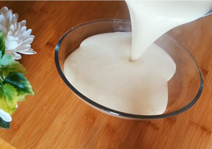 Σ ένα μπολάκι αδειάζουμε την υγρή κρέμα και την βάζουμε στο ψυγείο για μία ώρα.
