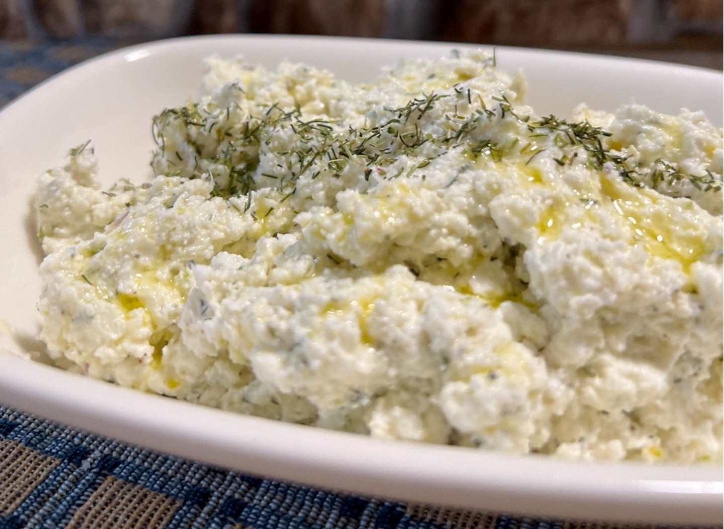 Τοποθετήστε τον ανθότυρο και τη φέτα σε ένα μπολ και λιωστε τα με ένα κουτάλι. Προσθέστε δυόσμο και άνηθο (είχα και τα δύο αποξηραμένα αλλά είναι