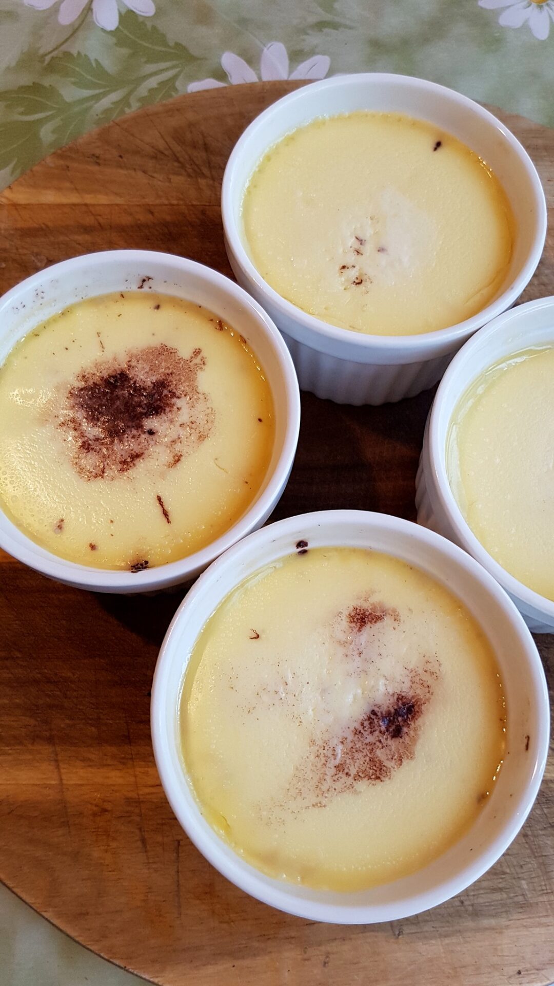 Ρίξτε το μείγμα στα τέσσερα μπολάκια. Ρίξτε βραστό νερό στο ταψί του φούρνου που περιβάλλει τα μπολάκια, μέχρι να καλύψει περίπου μια ίντσα από την κορυφή των ramekins σας.