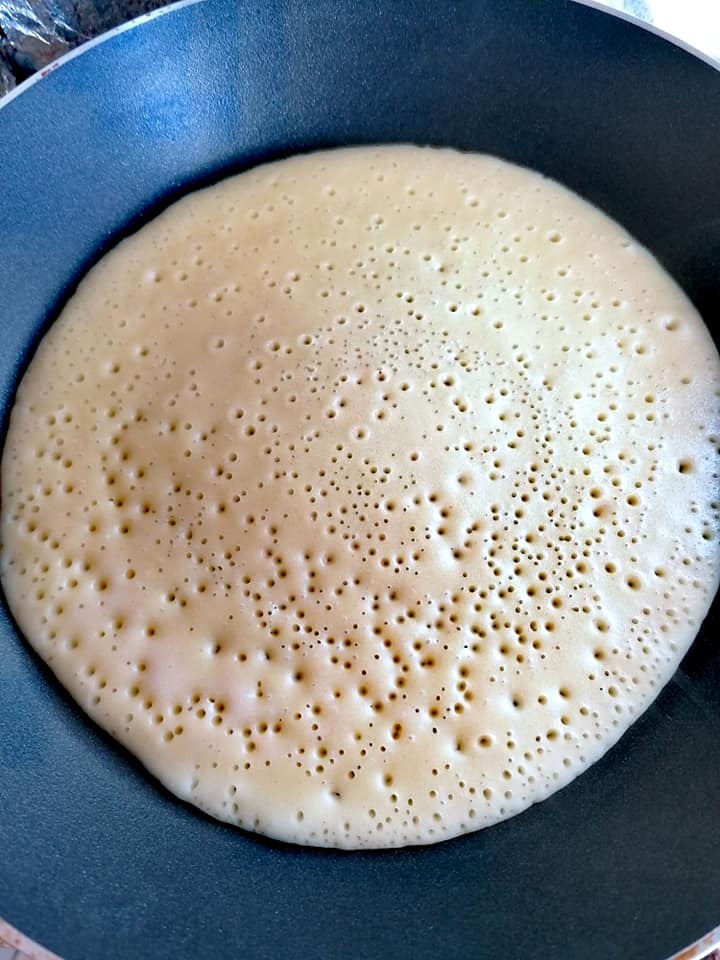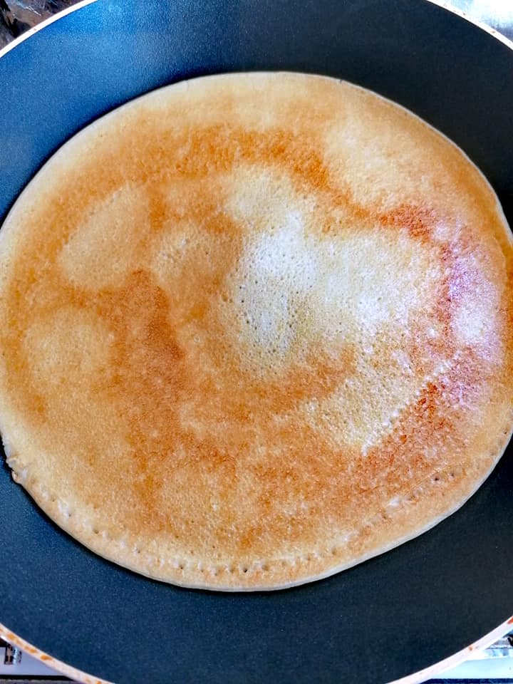 ψήνουμε να ροδίσει, τη γυρνάμε με σπάτουλα κι από την άλλη πλευρά.