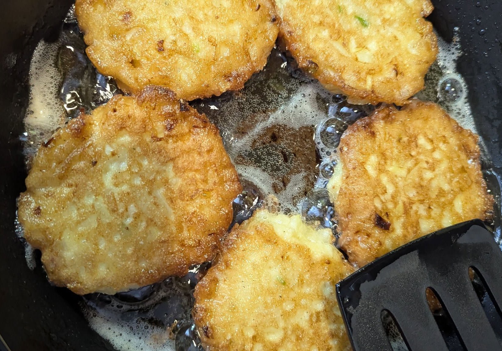 Παίρνω κουταλιές από το μείγμα και τις ρίχνω στο τηγάνι, σχηματίζοντας μικρές κροκέτες ή τηγανίτες. Τηγανίζω τις κροκέτες και από τις δύο πλευρές μέχρι να ροδίσουν ωραία. Τις βγάζω από το τηγάνι και τις ακουμπάω σε απορροφητικό χαρτί κουζίνας για να φύγει το περιττό λάδι. Τις σερβίρω ζεστές, σκέτες ή με γιαούρτι.
