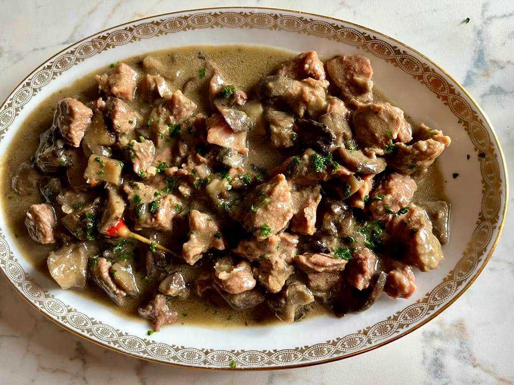 Μοσχαράκι με σάλτσα και μανιτάρια