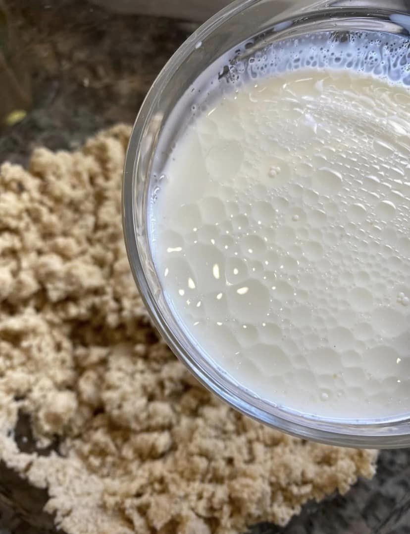 Στη συνέχεια, προσθέστε σταδιακά το γάλα και τρίψτε ξανά μέχρι να έχετε μια λεία ζύμη