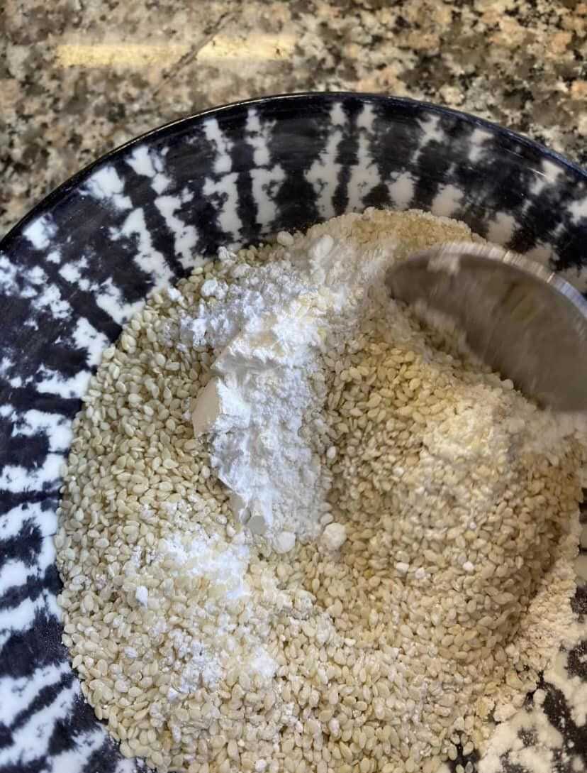 Τοτε Κυλήστε κάθε κορδόνι στο μείγμα σουσαμιού