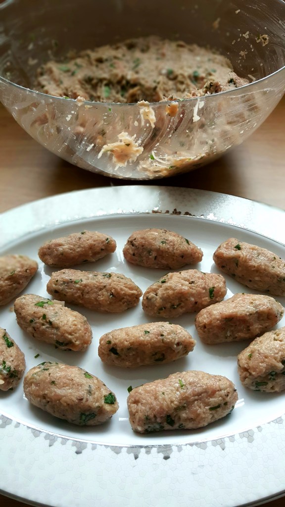 Σχηματίζετε τους κεφτέδες σε μικρές μπάλες ή στο παραδοσιακό σχήμα που είναι επιμήκη (δείτε την παρακάτω εικόνα) μέχρι να χρησιμοποιηθεί όλο το μείγμα.