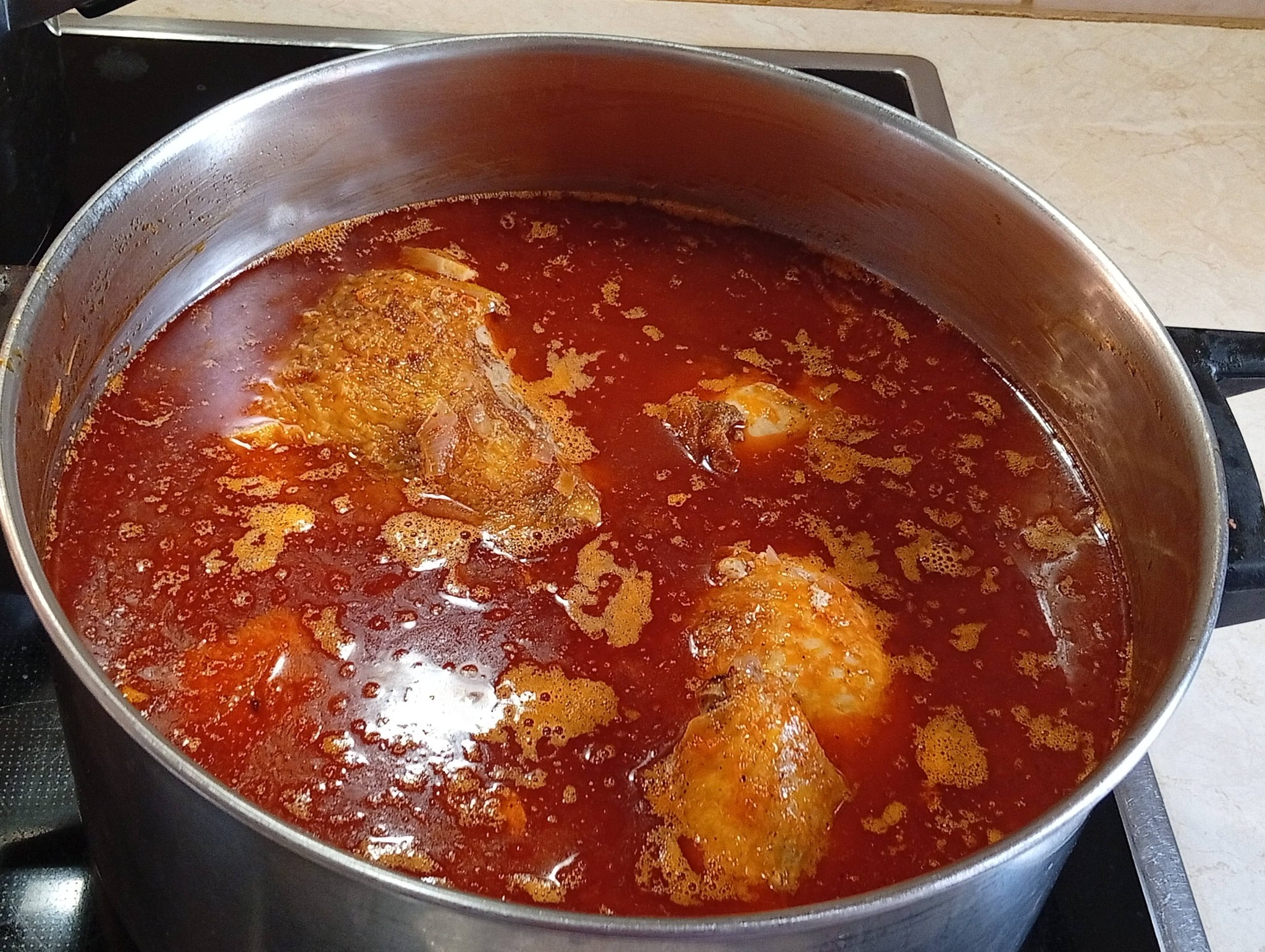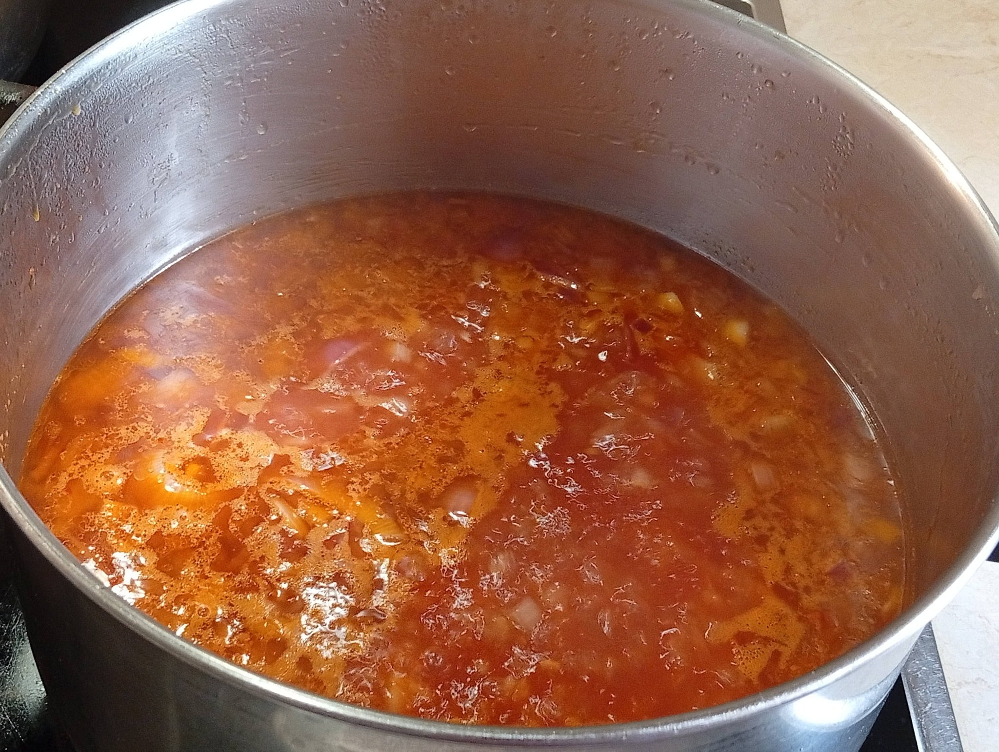 Προσθέτουμε πάντα ζεστό νερό στην κατσαρόλα και αφήνουμε τη σάλτσα να σιγοβράσει μέχρι να αρχίσει να δένει.
