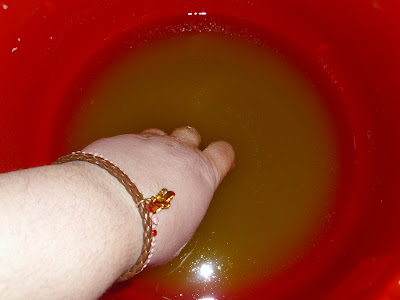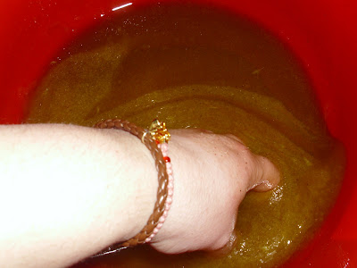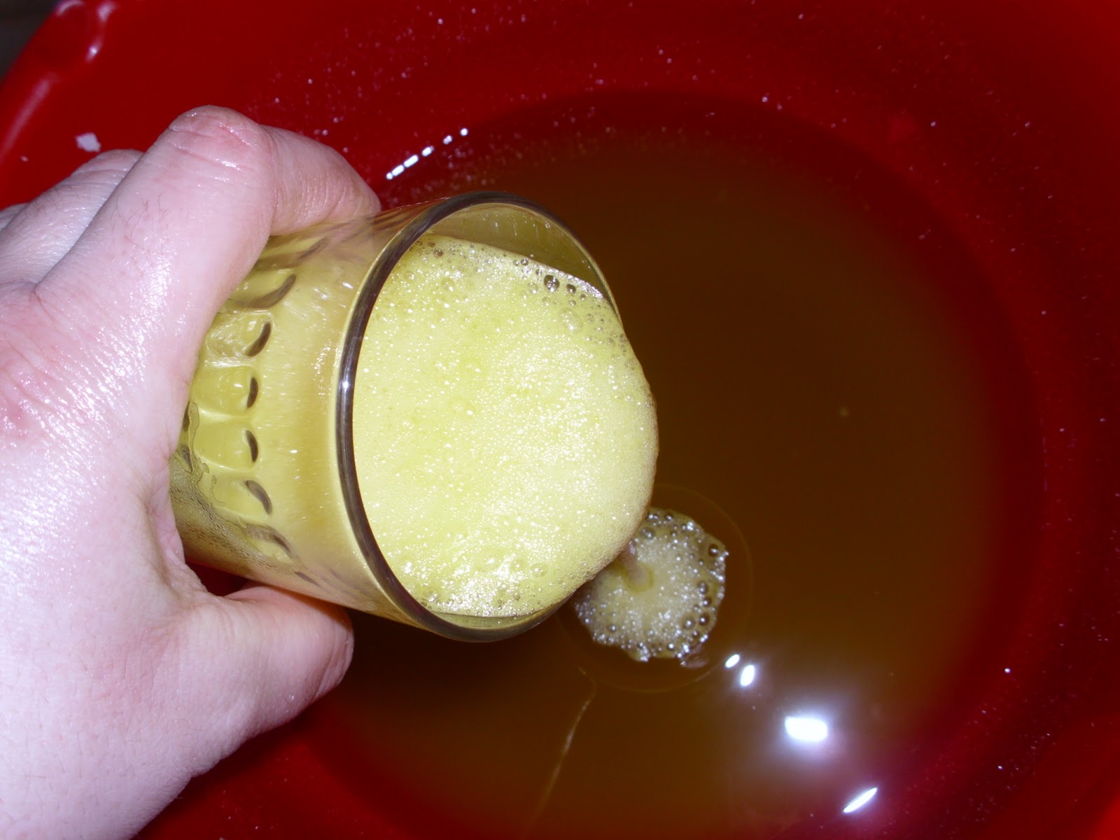 Ρίχνουμε την σόδα μέσα στο χύμο του πορτοκαλιού, ανακατεύοντας γρήγορα και επάνω από τη λεκάνη, γιατί φουσκώνει και χύνεται.