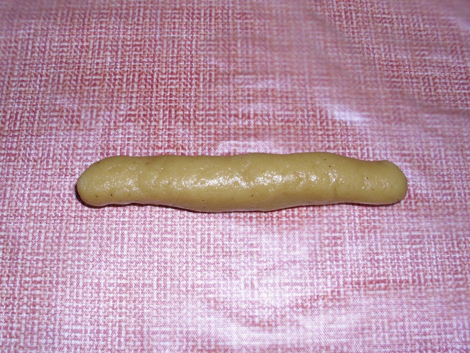 Παίρνουμε ζύμη στο μέγεθος περίπου ενός καρυδιού και πλάθουμε μπαστουνάκια στο μέγεθος ενός γυναικείου δάκτυλου