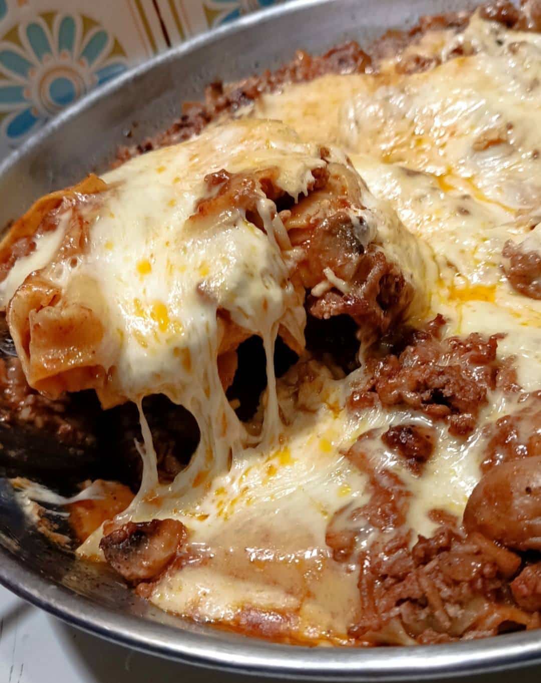 Δοκιμάστε τα πιο εύκολα λαζάνια στο τηγάνι. Μια έξυπνη συνταγή για λαζάνια με κιμά και μανιτάρια χωρίς τη χρήση φούρνου που ετοιμάζεται γρήγορα και παραμένει απίστευτα ζουμερή.