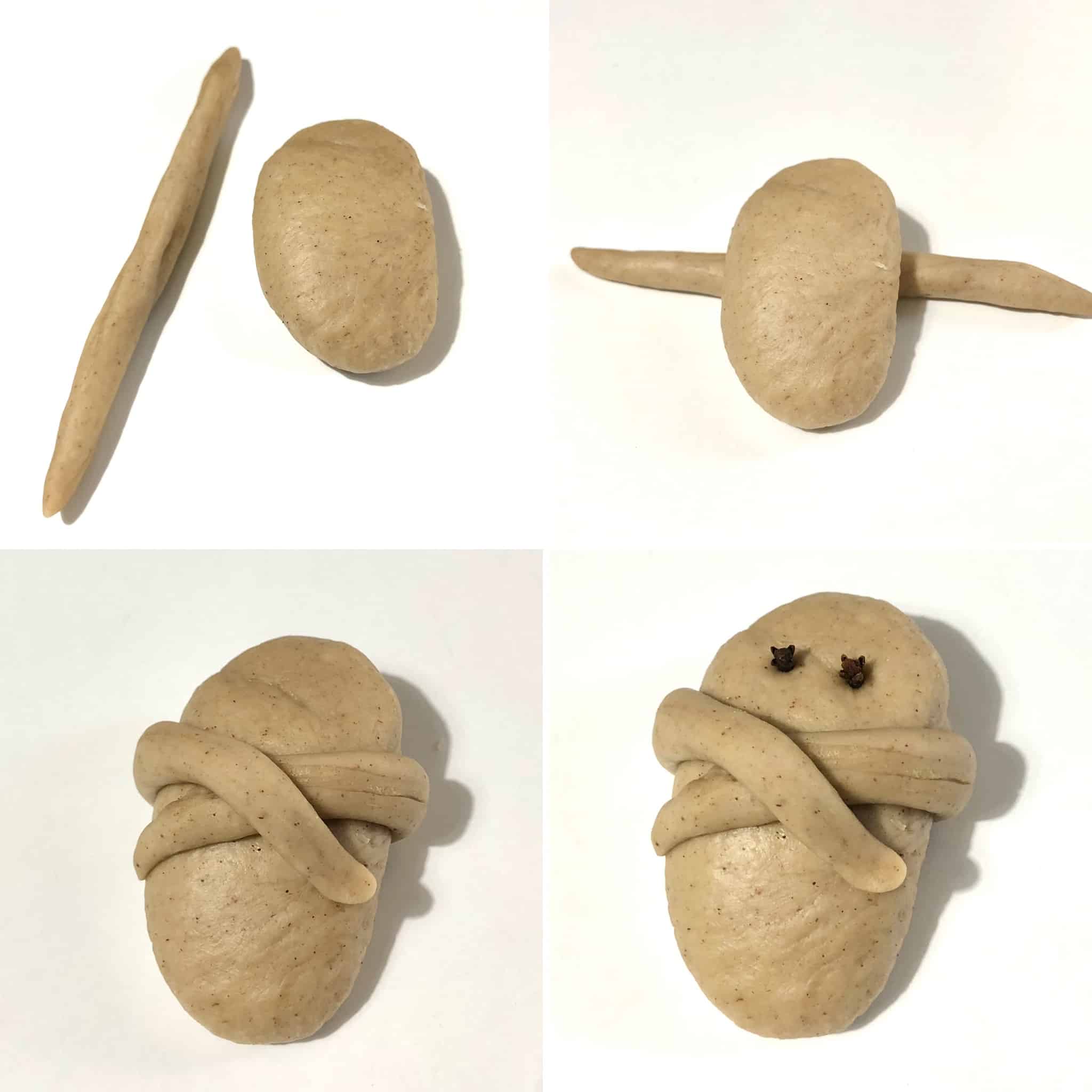 Ξεφουσκώστε απαλά τη ζύμη με τα χέρια σας και χωρίστε τη ζύμη σε 20 μπάλες. Διαμορφώστε κάθε μπάλα όπως φαίνεται στις εικόνες.