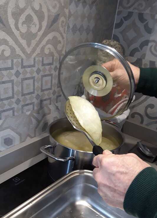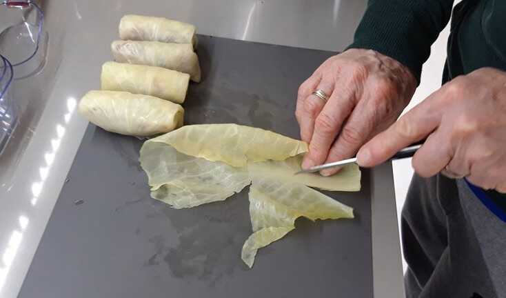 · Αφαιρέστε το λάχανο, αφήστε να κρυώσει ελαφρώς, αφαιρέστε όλα τα φύλλα που είναι μερικώς βρασμένα.