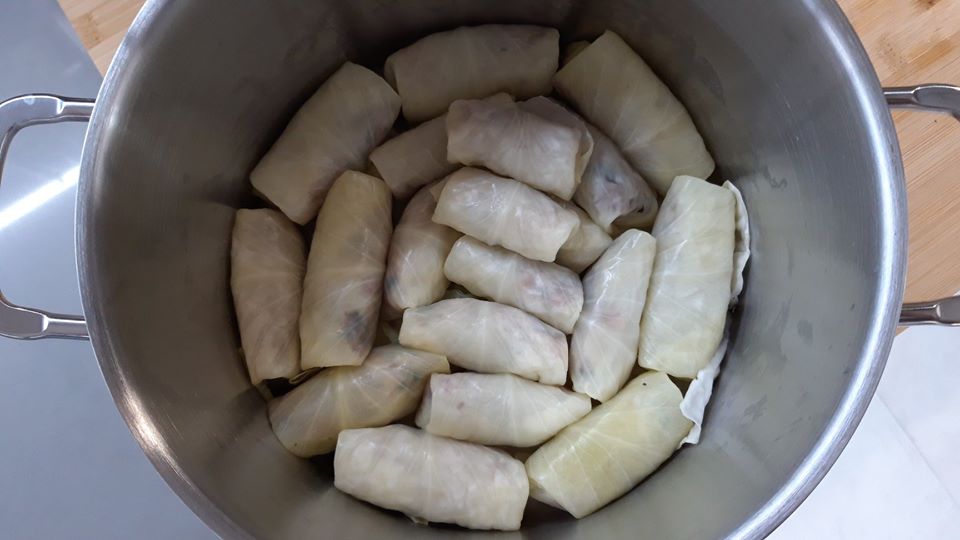 · Τυλίξτε τα ρολά του λάχανου (από την πλευρά της άρθρωσης προς τα κάτω) σφιχτά και βάλτε τα μέσα στην κατσαρολα σας σε κυκλικό μοτίβο γύρω από το εξωτερικό κύκλο, πηγαίνοντας προς το κέντρο. Μπορείς να στοιβάξεις τα ρολά πάνω από τα άλλα.