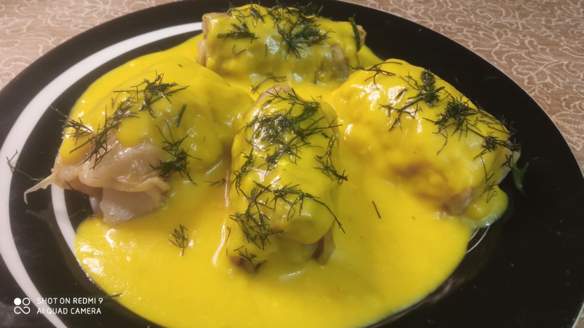 Σερβίρουμε τους λαχανοντολμάδες ζεστούς με την σάλτσα λεμονιού.