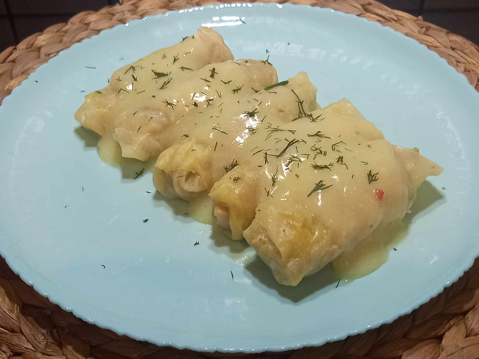 Βάζουμε τους λαχανοντολμάδες στο πιάτο μας και απλώνουμε όση σάλτσα θέλουμε πάνω από τους λαχανοντολμάδες, πασπαλιζουμε με κόκκινο πιπέρι και σερβίρουμε.