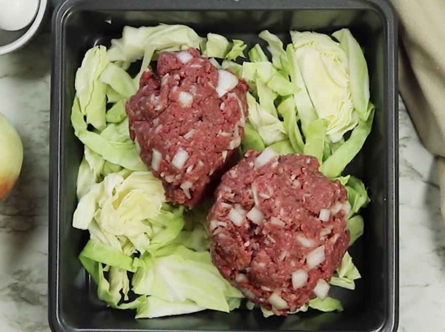 Προσθέστε το μείγμα κρέατος από πάνω από το λάχανο
