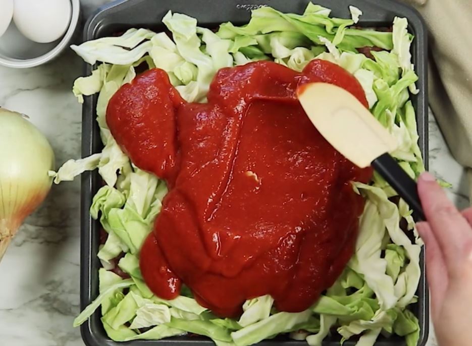 Ρίξτε την σάλτσα ντομάτας από πάνω από το λάχανο για να το καλύψετε τελείως.