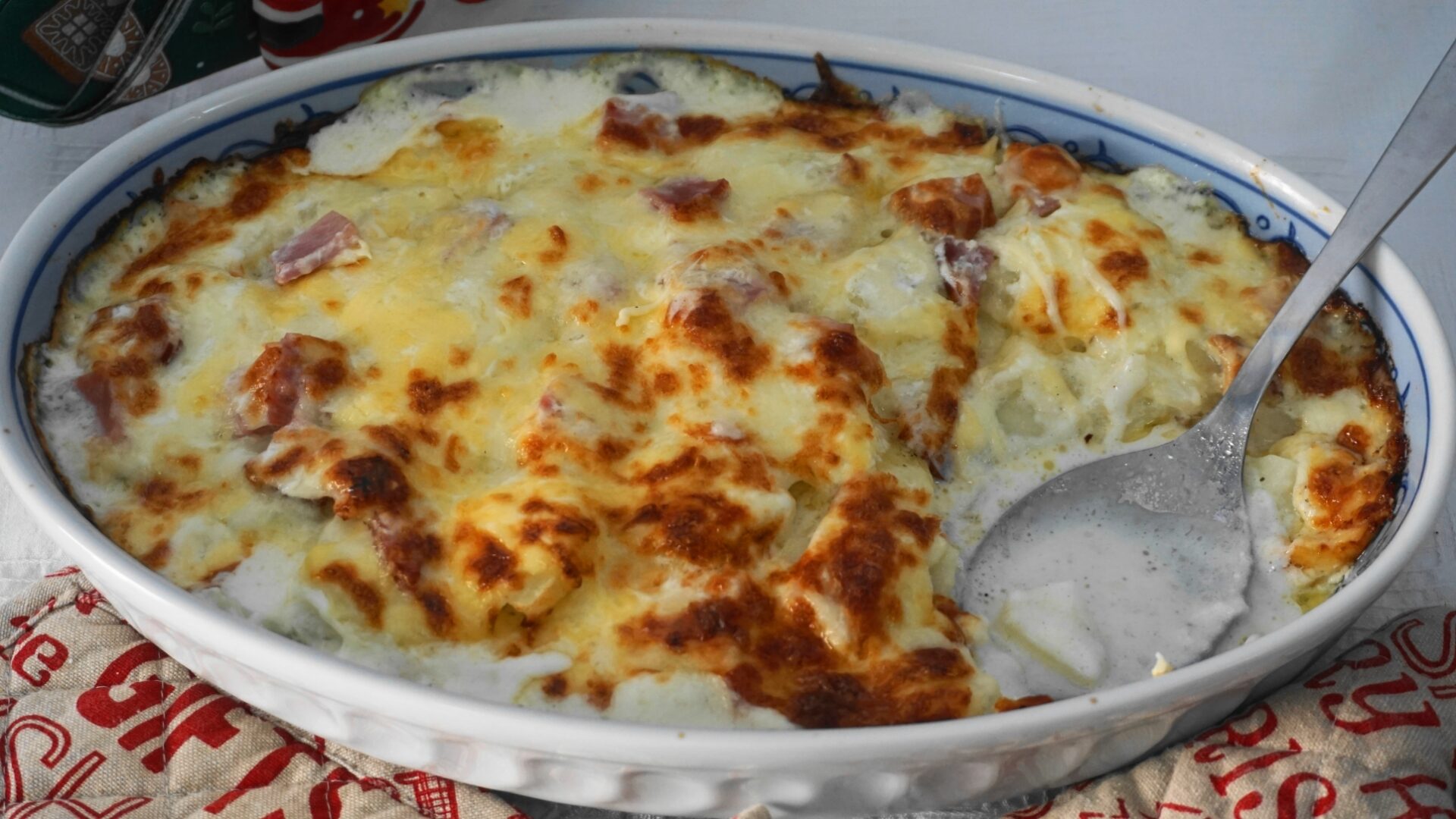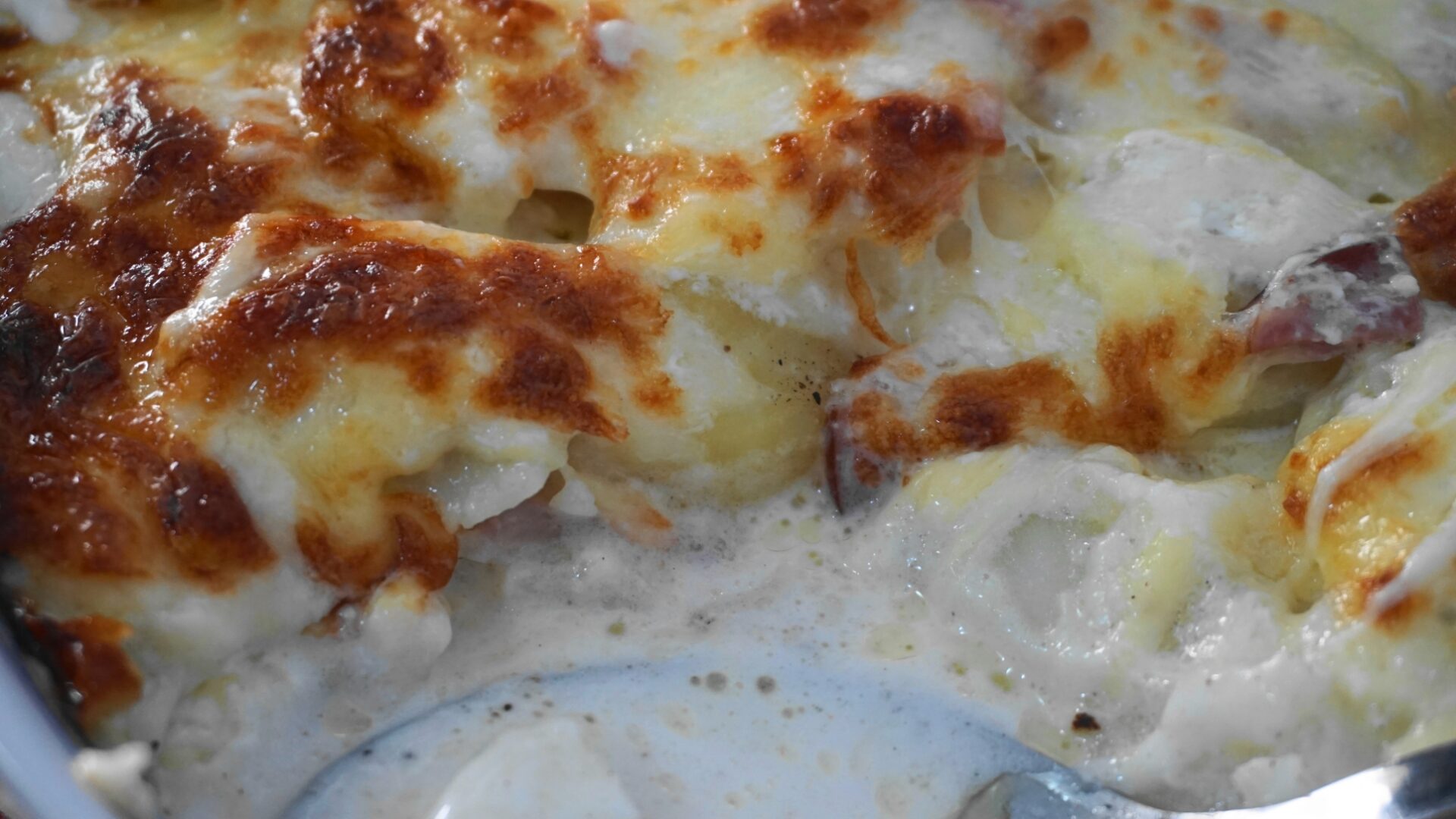 Αφήνουμε λίγο το ογκρατέν να σταθεί και σερβίρουμε κατά προτίμηση ζεστό.