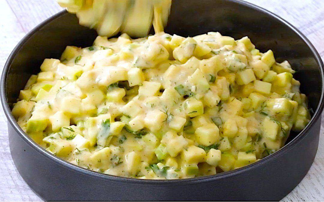 Κόβουμε τα κολοκυθάκια σε κύβους. Προσθέστε τα αυγά, το κεφίρ, το αλεύρι, το μπέικιν πάουντερ, το ελαιόλαδο, τα μπαχαρικά,