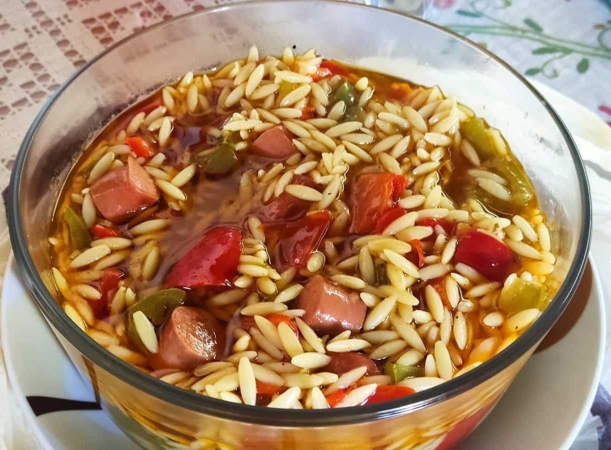Σερβίρουμε αμέσως το κριθαράκι με τις πιπεριές όσο είναι ζεστό.