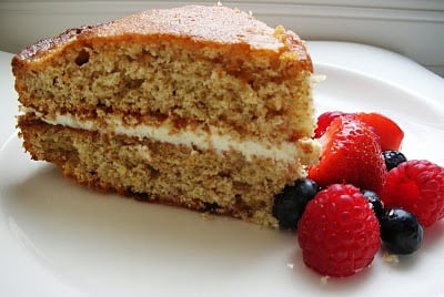 Κόψτε το κέικ και σερβίρετε με φρέσκα μούρα.
