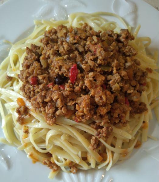 Σωτάρισα το κιμά με το κρεμμύδι ψιλοκομμένο έσβησα με κρασί και πρόσθεσα τις ντομάτες ώριμες, πελτέ, κονκασέ, καρότο, πιπεριά μικρή πράσινη ψιλοκομμένη, πιπεριά μικρή κόκκινη ψιλοκομμένη, αλάτι,πιπέρι, ρίγανη,κανέλα ξύλο,μπαχάρι,και λίγο κρόκο Κοζάνης ζεστό νερό και σιγοβράζω μέχρι να δέσει η σάλτσα μου.