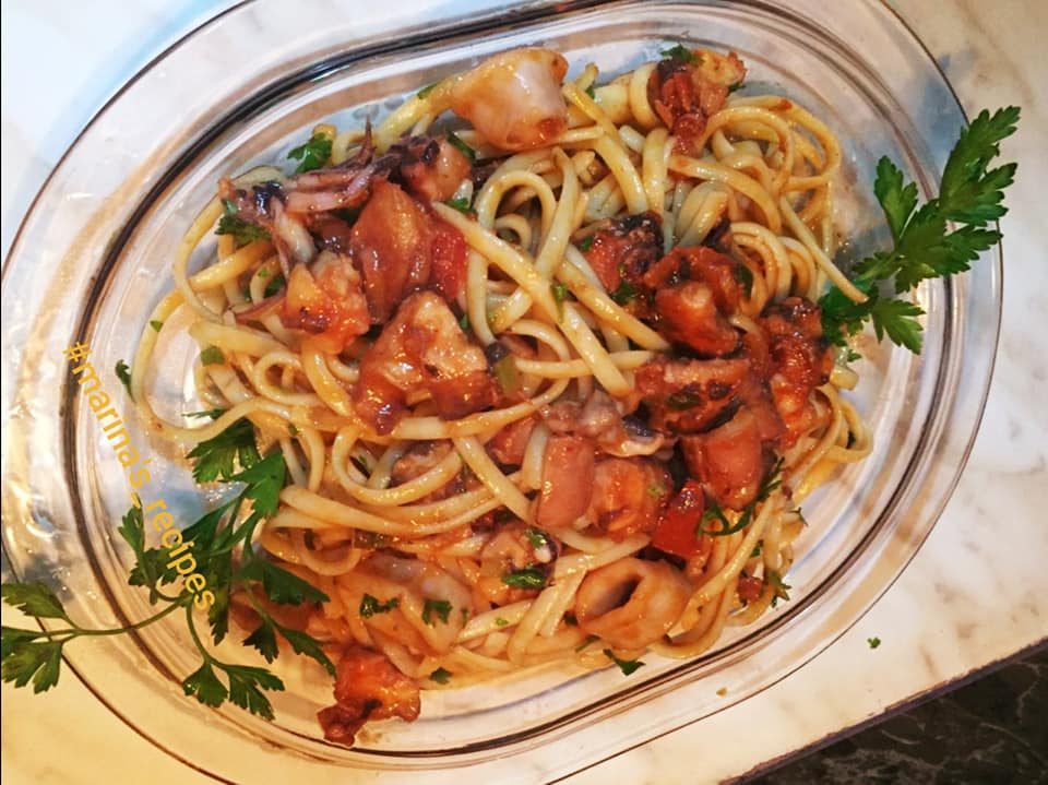 Λινγκουίνι με χταπόδι, καλαμάρια και γαρίδες !! (Recipe in Greek & English)