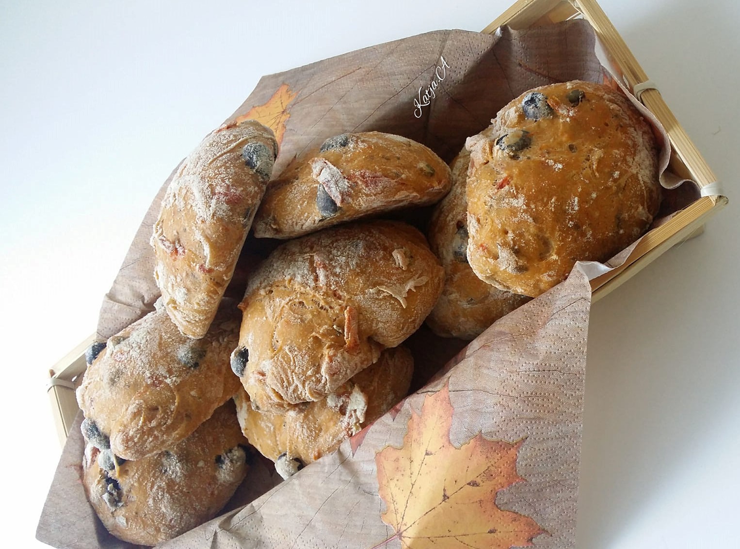 Αφού περάσει ο χρόνος, πασπαλίζουμε την επιφάνεια εργασίας με σιμιγδάλι και ρίχνουμε τη ζύμη, τη χωρίζουμε σε 9 το πολύ 10 κομμάτια, θα είναι μαλακά και λίγο κολλώδη αλλά με τη βοήθεια του αλευριού σχηματίζουμε τα καρβέλια και τα τοποθετούμε σε ταψί στρωμένο με λαδόκολλα, πασπαλίζουμε ξανά την επιφάνεια με λίγο ακόμα αλεύρι και αφήνουμε να φουσκώσει για άλλα 30 λεπτά.