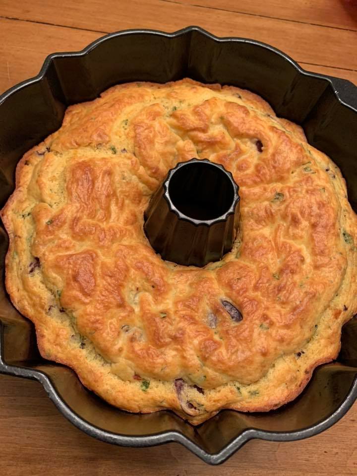 4. Αναμίξετε όλα τα παραπάνω συστατικά και ρίξτε μέσα στην λαδωμένη φόρμα.