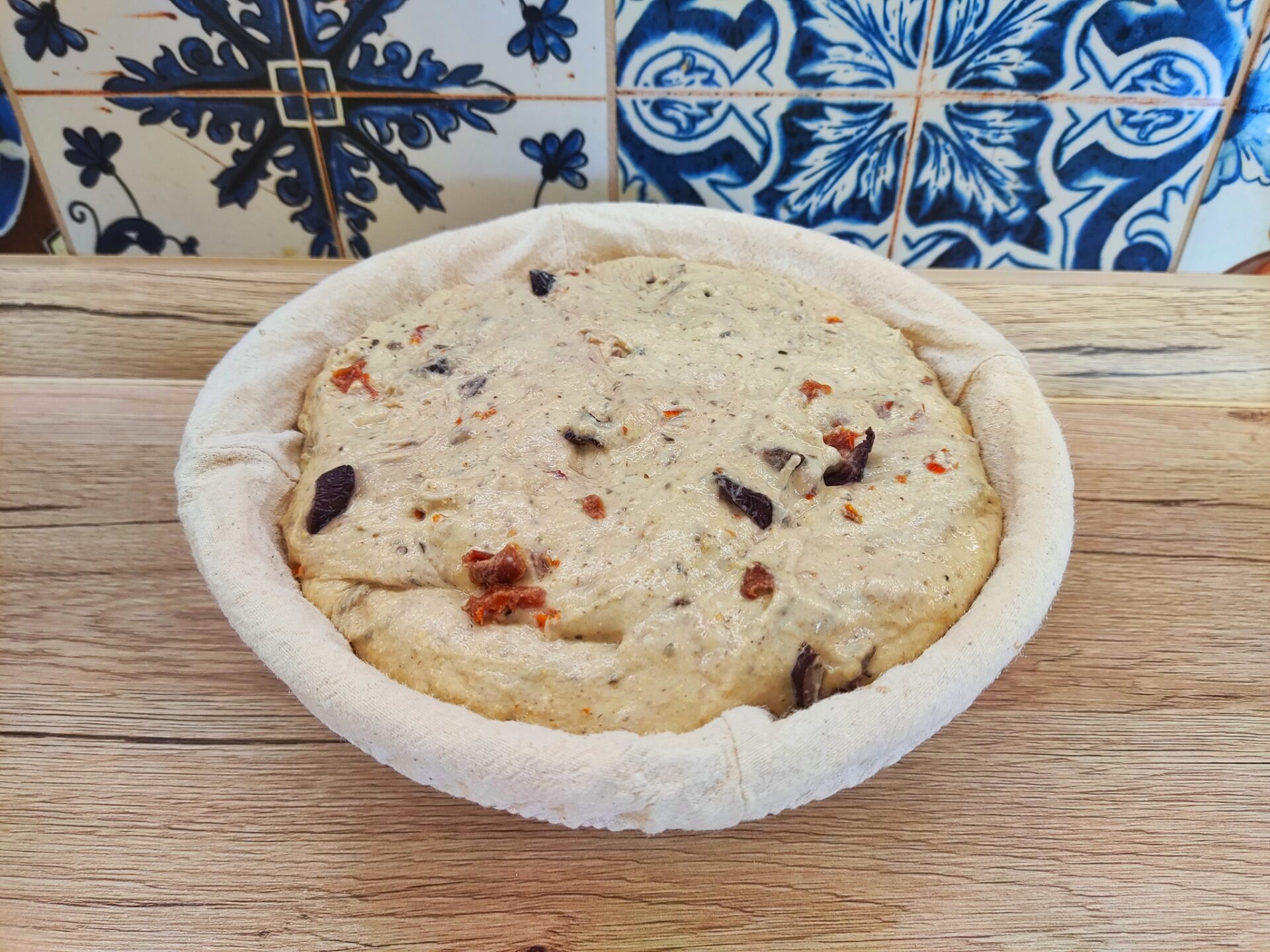 Σκεπάζουμε τη ζύμη και την αφήνουμε σε θερμοκρασία δωματίου για 12 έως 24 ώρες. Αυτή η αργή διαδικασία δίνει καλύτερη γεύση στο Λιόψωμο.