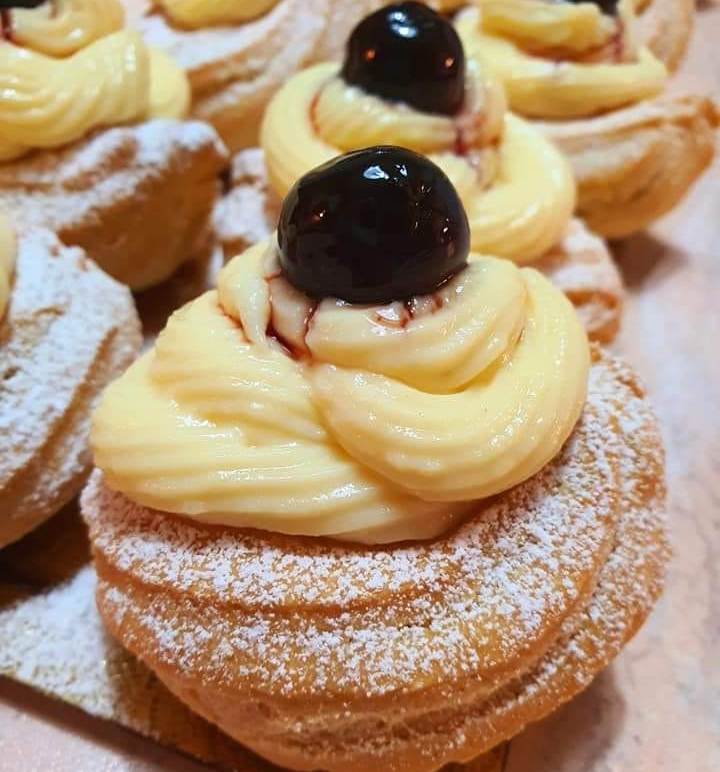 Τοποθετουμε τη κρεμα στη σακουλα με το στομιο σε σχημα αστεριου και γεμιζουμε στο κεντρο του λουκουμα, με κυκλικες κινησεις