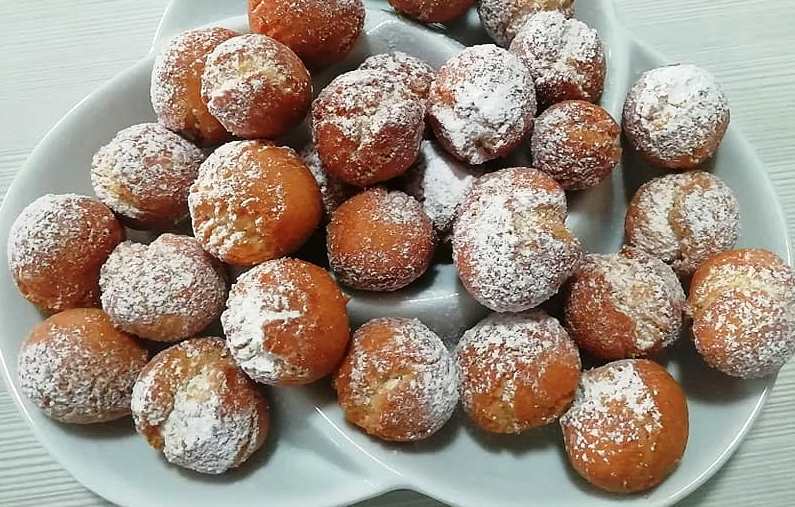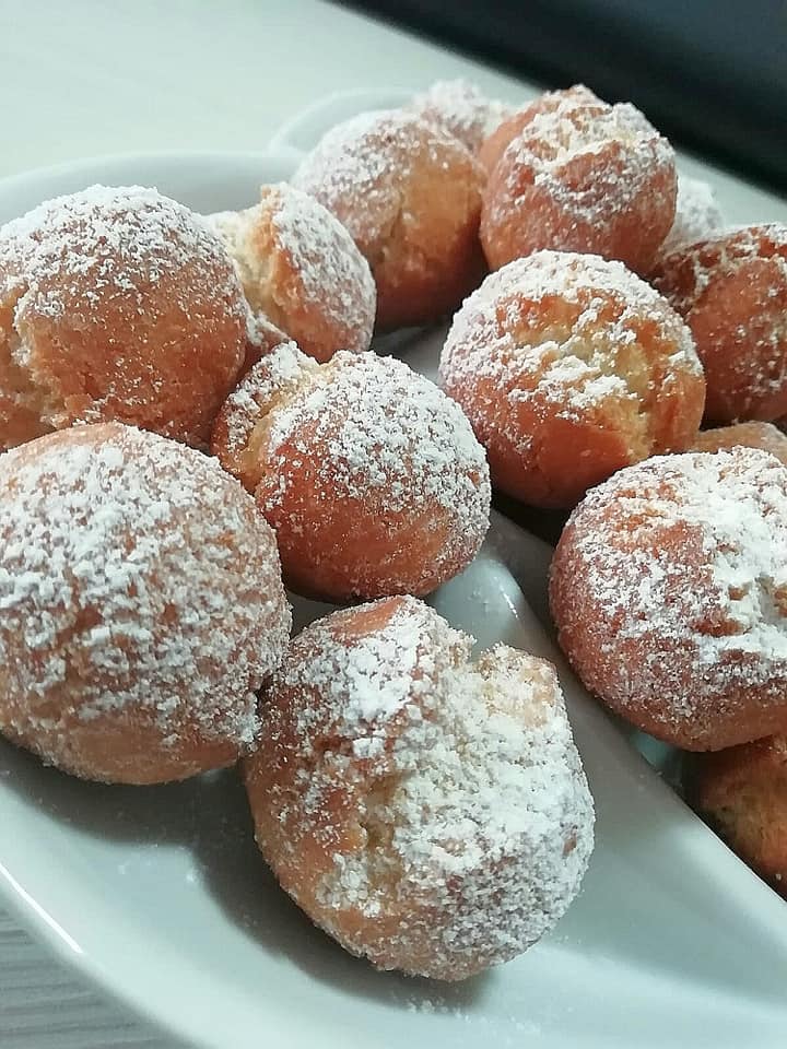 Βγάζουμε από το τηγάνι, στραγγίζουμε το περιττό λάδι σε χαρτί κουζίνας και μετά πασπαλίζουμε με ζάχαρη άχνη πριν το σερβίρουμε.