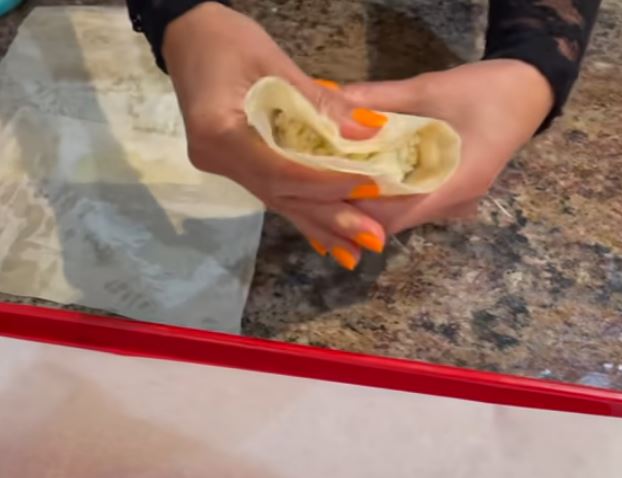 7. Γεμίστε το χωνί με το μείγμα τυριου, διπλώστε και κλειστε το απο πάνω καλά.
