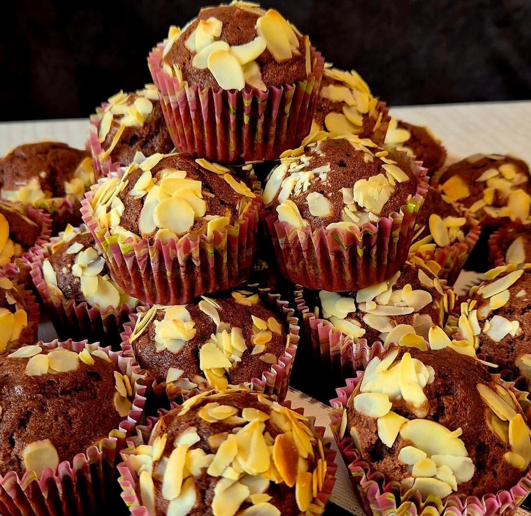 Αφράτα Μάφινς Κακάο με Φιλέ Αμυγδάλου, φρεσκοψημένα σε θήκες, με χρυσαφένια επικάλυψη