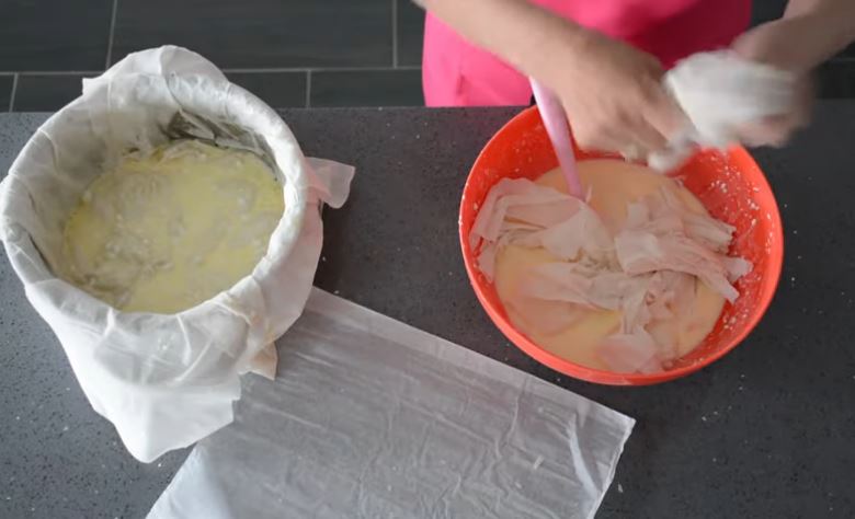 Τα υπόλοιπα φύλλα τα κόβουμε κομμάτια με τα χέρια μας και τα ρίχνουμε στο μείγμα μας.