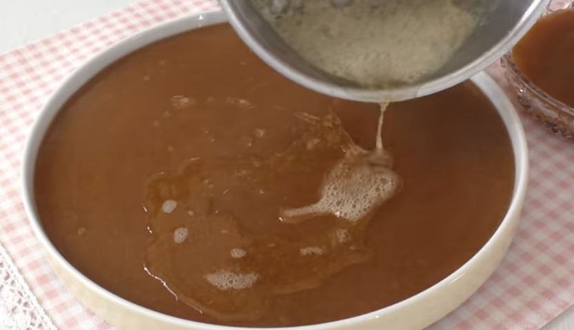 Βάζουμε την κατσαρόλα στην φωτιά και ανακατεύουμε συνέχεια μέχρι να πήξει πολυ καλα και να κάνει χοντρές φουσκάλες. Αδειάζουμε το μείγμα σε ταψάκι 26 εκ.
