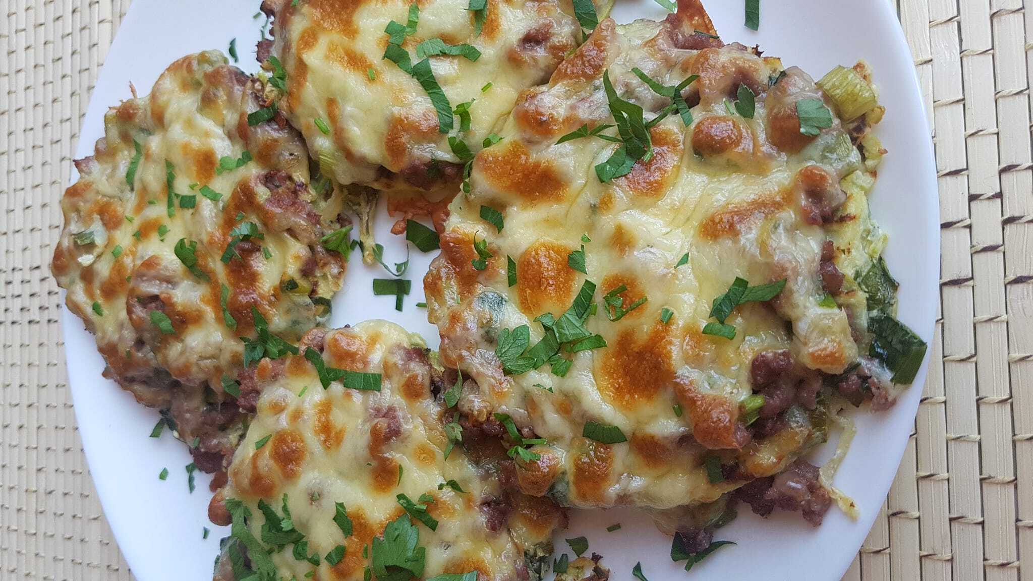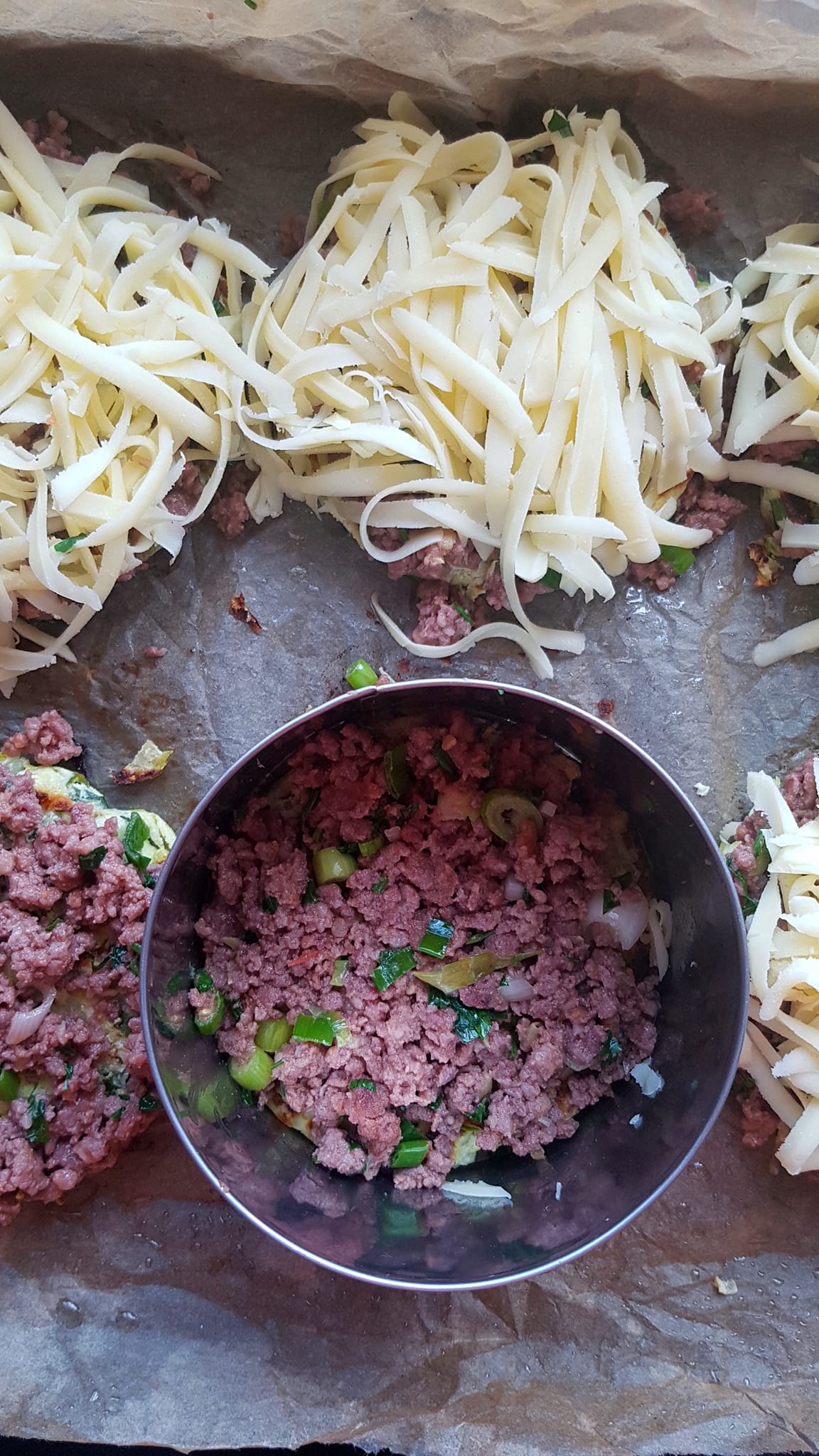 Μίνι πίτσες με κολοκυθάκια με κιμά και κίτρινο τυρί!