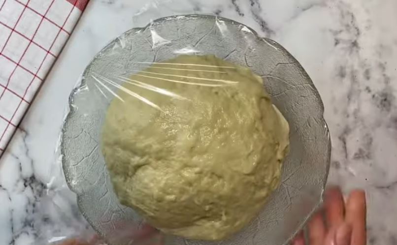 σκεπάζουμε με μία μεμβράνη να ξεκουραστεί για 45 λεπτά