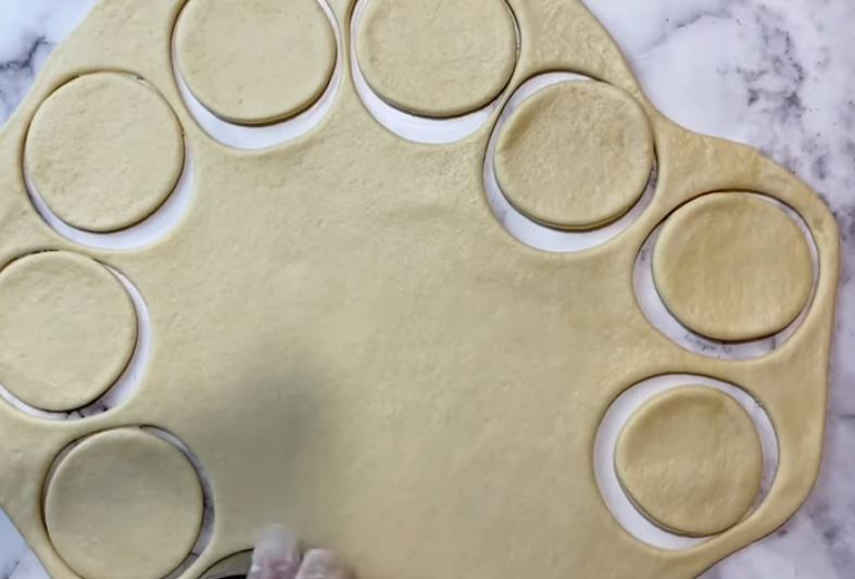 ανοίγουμε ένα χοντρό φύλλο πάχους περίπου 1/2 εκ και ένα ποτήρι κόβουμε τα πιτσάκια μας.