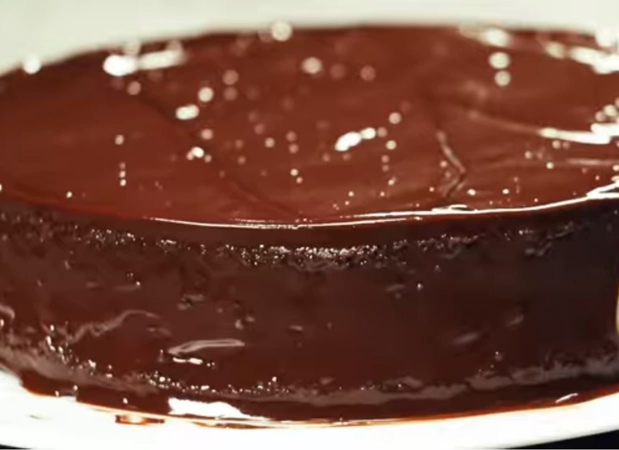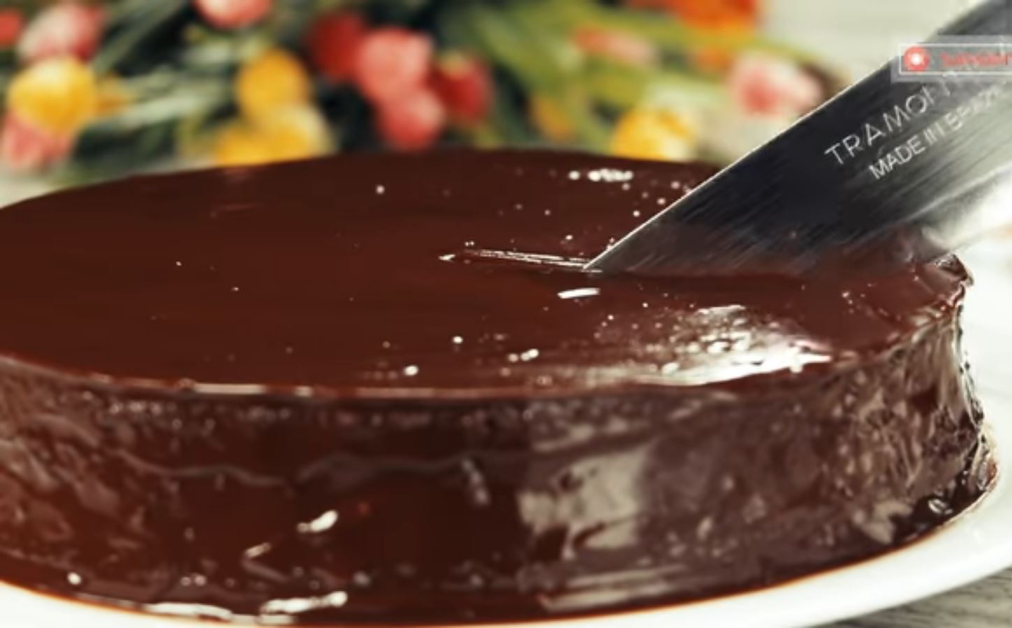 Βγάζουμε το κέικ από το φούρνο και απλώνουμε από πάνω την υγρή σοκολάτα την απλώνουμε γύρω γύρω. Κόβουμε και σερβίρουμε
