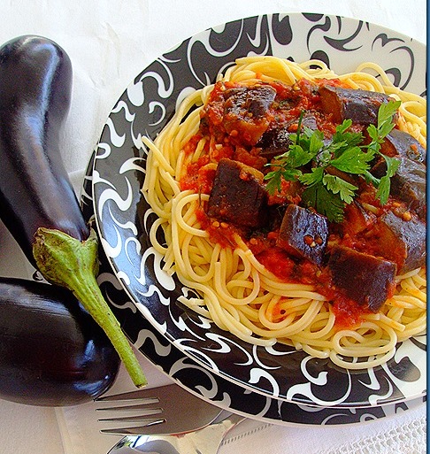 Μακαρόνια με σάλτσα μελιτζάνα