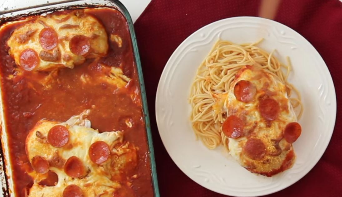Μακαρόνια με σάλτσα πίτσας και κοτόπουλο