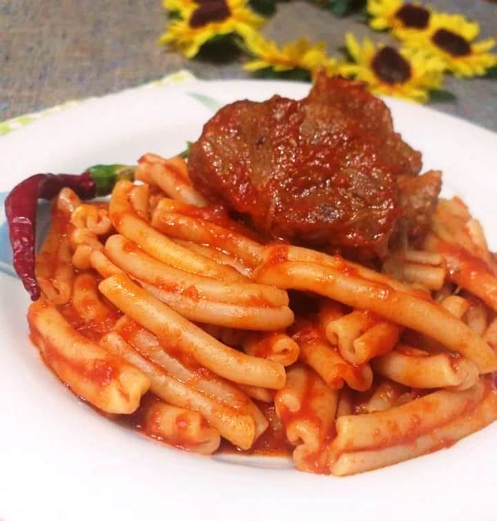 Όταν είναι έτοιμα και αφού τα στραγγίσουμε, τα ανακατεύουμε με την σάλτσα από το κρέας.