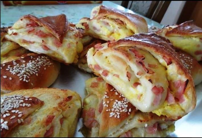 Προθερμαίνουμε τον φούρνο στους 200C και ψήνουμε τη ζύμη για περίπου 20-25 λεπτά. Ενώ ψήνουμε το πρώτο ταψί από το πρώτο ρολό, επαναλαμβάνουμε τη διαδικασία με το δεύτερο μέρος της ζύμης.