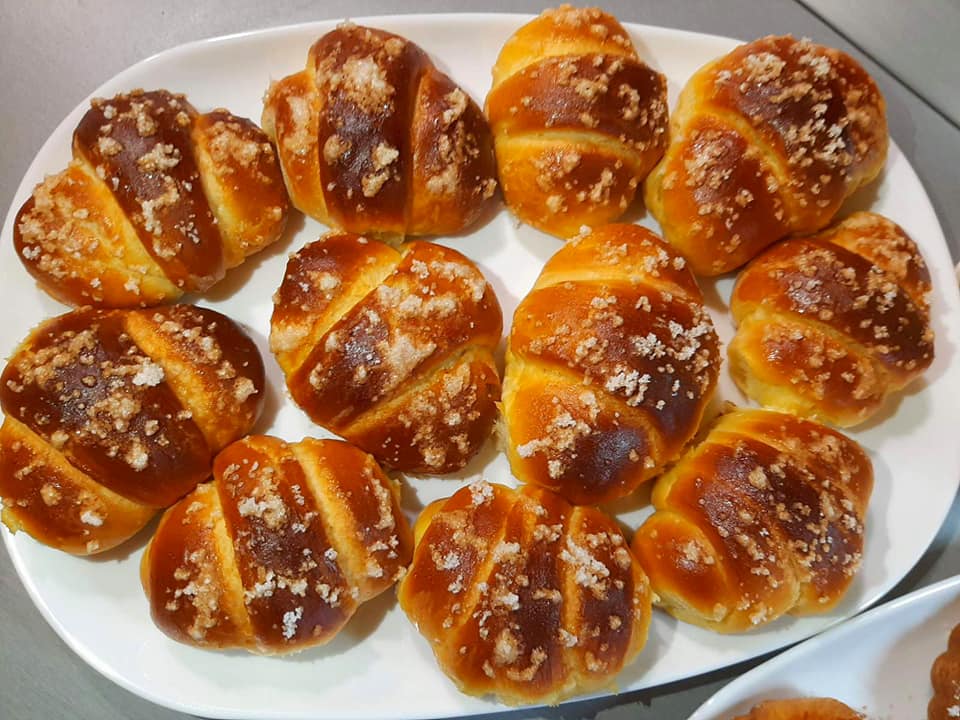 Τακτοποιήστε τα ρολά σε δύο δίσκους καλυμμένους με χαρτί ψησίματος. Απλώνουμε με κρόκο αυγού και πασπαλίζουμε με ζάχαρη. Ψήνουμε σε προθερμασμένο φούρνο 180 μοιρών μέχρι να ροδίσουν (περίπου 20 λεπτά)