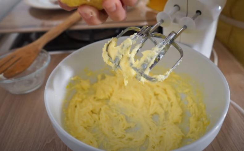Στο μπολ ενός μίξερ ρίχνουμε το βούτυρο, ζάχαρη, και τα αυγά και χτυπάμε να ομογενοποιηθούν και να αφρατεψει.