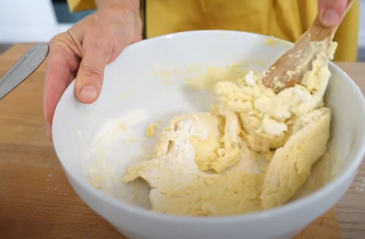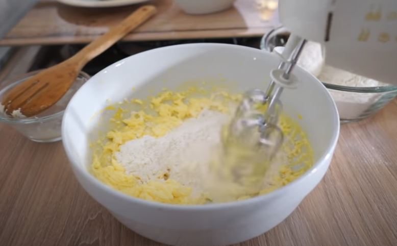 μείγμα σταδιακά στο μπολ και χτυπάμε με το μιξερ μέχρι να πάρουμε μία μπισκοτένια ζύμη.